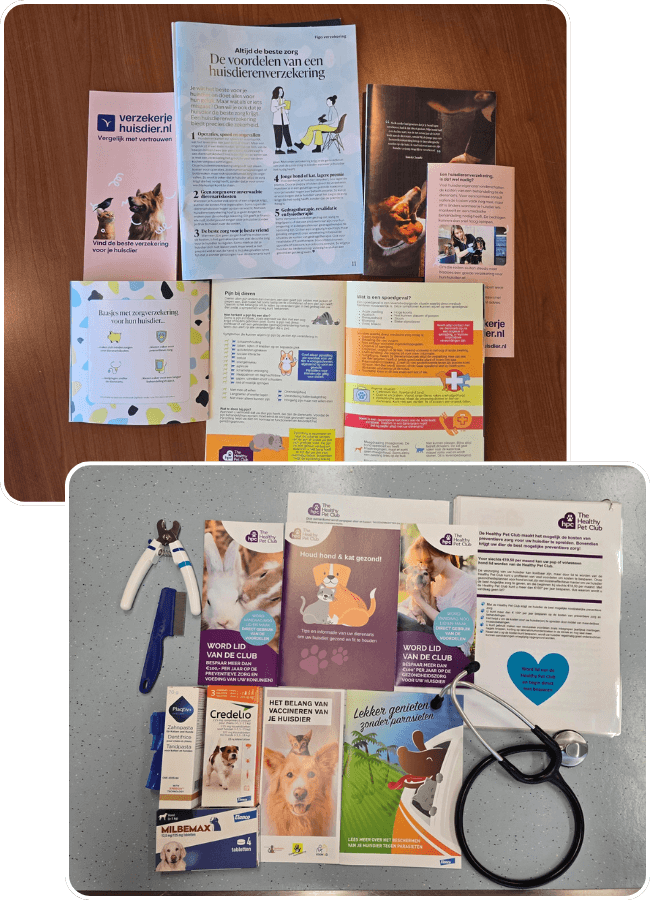 Wilt u meer weten over zorg op maat, het Healthy Pet Club-plan of een verzekering? Neem gerust contact met ons op – we helpen u graag!